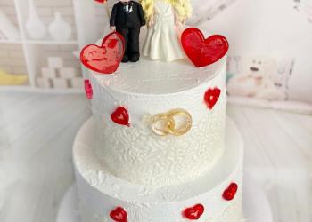 Двухъярусный свадебный торт на 5 кг. В декоре используются фигурки из мастики.