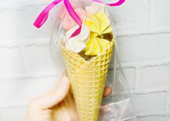 Мини безе в хрустящем вафельном рожке. Безе могут быть разного цвета Каждый рожок упакован в пакетик с ленточкой.