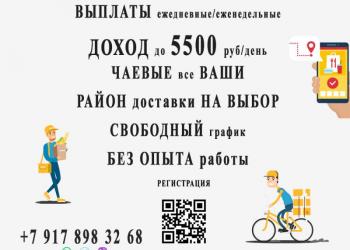Требуются курьеры, готовые зарабатывать до 5500 ₽ ежедневно на авто и до 3400 ежедневно пешком Условия: + любой способ...
