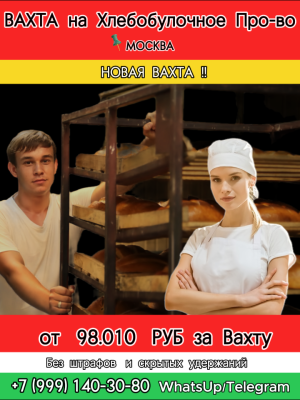 ВАХТА НА ХЛЕБОБУЛОЧНОЕ ПРОИЗВОДСТВО ✅РАЗНОРАБОЧИЕ 📍Москова, Хлебозаводский проспект 💰💰💰 СТАВКА 2970 РУБ/СМЕНА...