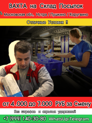 Приглашаем мужчин и женщин со всей России на работу Вахтовым методом от 15 дней в OZON Склады в Подмосковье находятся. г.