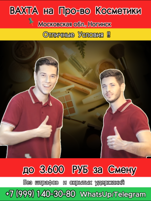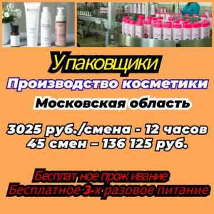 ✅ Производство косметики в Московской области Упаковщики Обязанности: работа на конвейере, на разных участках (проверка...