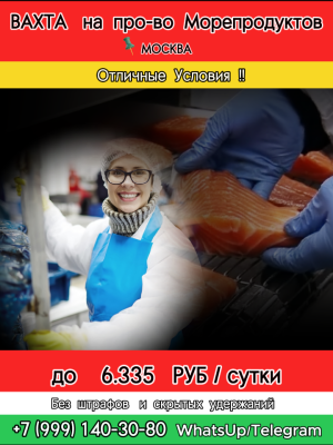 ВАХТА НА ПРОИЗВОДСТВО МОРЕПРОДУКТОВ ✅УПАКОВЩИЦЫ 📍г Москва, метро Речной вокзал 💰💰💰 СТАВКА 3200 РУБ (ДНЕВНЫЕ СМЕНЫ)/3155...