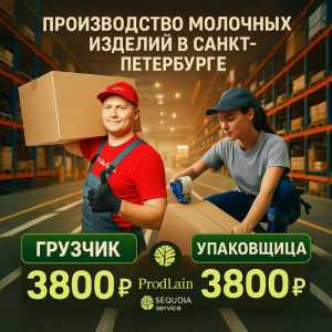 Производство молочных изделий. Позиции: - упаковщица - грузчик Ставка: 3800р 30 смен - 114.000р 45 смен - 171.