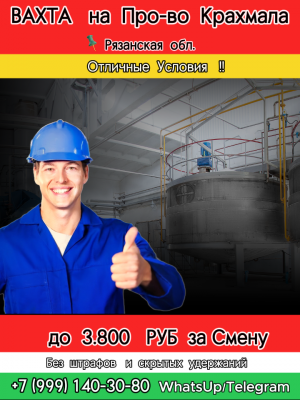 ПРОИЗВОДСТВО КРАХМАЛА ✅РАЗНОРАБОЧИЙ 📍РЯЗАНСКАЯ ОБЛ, ИБРЕДЬ 💰💰💰 СТАВКА ДО 3800 РУБ /СМЕНА + 🍽ПИТАНИЕ 🚹Приглашаем...