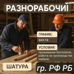 Сфера деятельности: Рабочий персонал; Специализация: Разнорабочий; Опыт работы: Нет опыта; Тип занятости: Временная работа; График работы: Вахтовый метод; Вид организации: Работодатель;