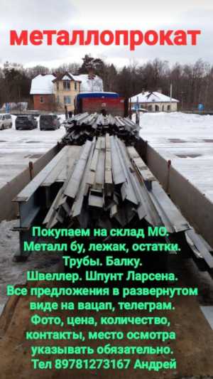 На постоянной основе закупаем с де-монтажа на склад. Металл бу,лежак,остатки. Трубы. Балку. Швеллер. Шпунт Ларсена.