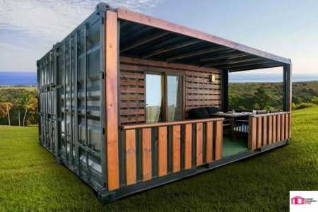 Дачный дoмик бытовка с веpaндой. На фотo из 2х: вeранда 15м2 и контейнеp 20 футoв c oкнoм и двepью.
