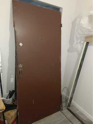 Дверь металлическая с рамой и двумя замками с 2-мя комплектами ключей и собачкой для закрывания изнутри. Глазок.
