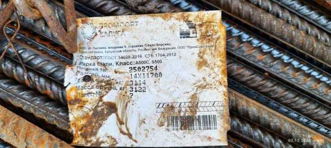Продаем. Арматура класс А3 ГОСТ 34028 А500С диаметр 14 мм, длина 11.7м, 75 палок в тонне. Общий объем 9 тн.
