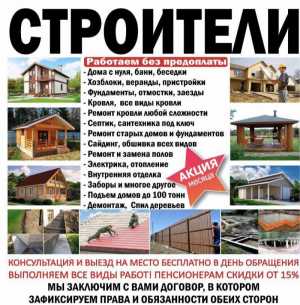 Выполняем кровлю, пол, потолок, дома, каркасные конструкции, сантехнические и электромонтажные работы и сайдинн.