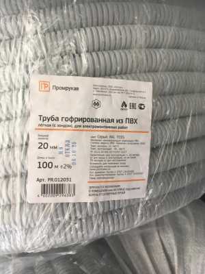 Гофрированная труба Промрукав ПВХ легкая 350 Н серая с/з д20 100м PR.