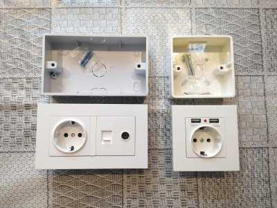 Розетка двойная с установочной коробкой (подрозетником) 220V + Розетка для интернет кабеля (компьютерная розетка RJ45...