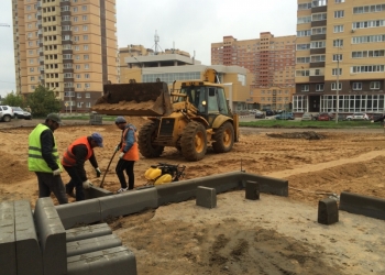 Подготовка основания из песка, щебня, асфальтовой крошки. Укладка асфальта асфальтоукладчиком и вручную.