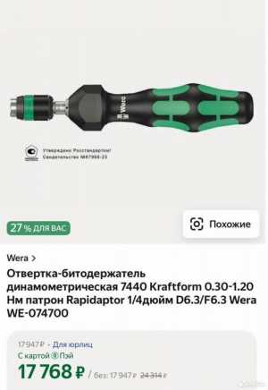 Абсолютно новые Динамометрические отвертки Wera, серия 7440, 0.3-1.2 Нм, 1/4", WE-074700.