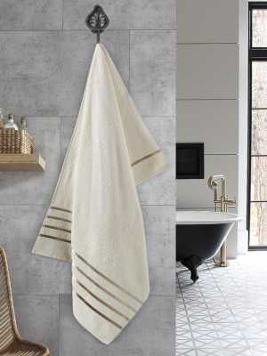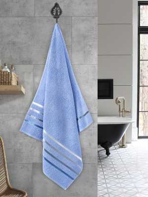 Полотенце пляжное производство Турция размер 80х160 цвет на белом фоне полосы цвет светло голубой
