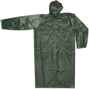 Плащ-дождевик, нейлон-ПВХ, 220 мкрн, на кнопках и молнии, проклеенный, карманы, капюшон с козырьком, в сумочке.