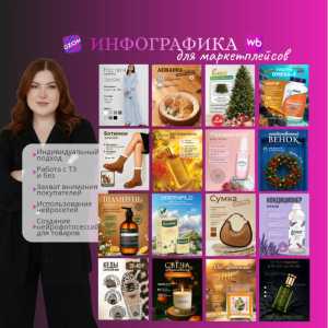 Здравствуйте! Меня зовут Дарья и я сертифицированный дизайнер инфографики для маркетплейсов! Если Вам нужна помощь в...