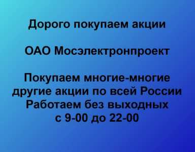 Покупаем акции ОАО Мосэлектронпроект и любые другие акции по всей России Покупка акций Мосэлектронпроект в любом городе У...