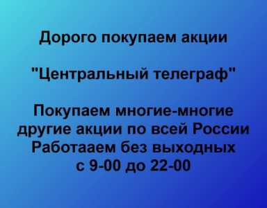 Покупаем акции Центральный телеграф и любые другие акции по всей России Покупка акций Центральный телеграф в любом городе...