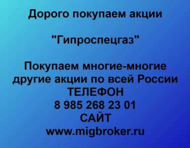 Покупаем акции Гипроспецгаз и любые другие акции по всей России Покупка акций Гипроспецгаз в любом городе У нас лучшая...