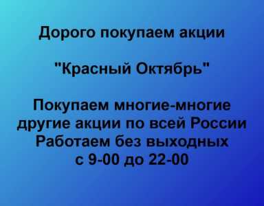 Покупаем акции Красный Октябрь и любые другие акции по всей России Покупка акций Красный Октябрь в любом городе У нас...