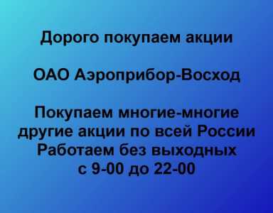 Покупаем акции ОАО Аэроприбор-Восход и любые другие акции по всей России Покупка акций Аэроприбор-Восход в любом городе У...