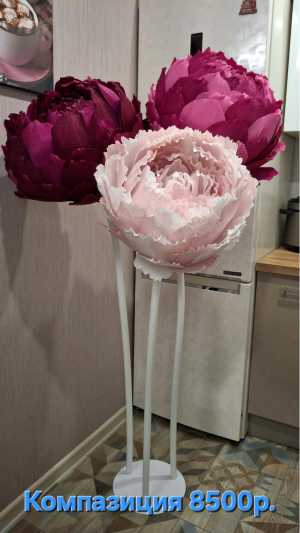 Ростовые цветы ручной работы из изолона и гофрированной бумаги.