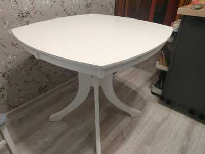Стол «Марсель», Новый. Эмаль белая матовая, дубовый . Размеры: В собранном виде 85 на 85; в разложенном 120 на 85.