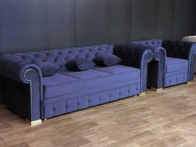 Тройка стёганая Диван +2 кресло + 2 пуф с ящиком Кресла и диван раскладные Размер Обший 410см Фабрика LION, Россия.