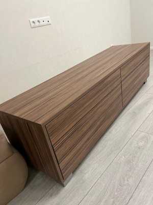 Тумба под тв, производство mr.doors, доводчики Hettich, материал Egger. Ширина 162, глубина 45, высота 45. Стоял ТВ 65’.