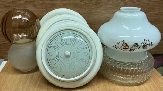 Прозрачные,белые матовые,тёмно-розовый плафоны стеклянные для светильников, светильники круглые настенные. В наличие : 1).