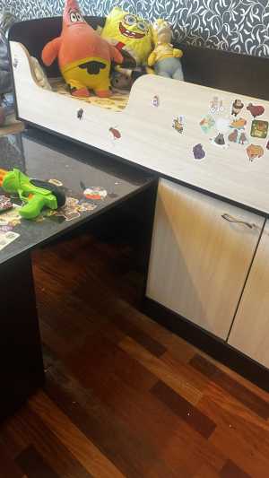 Кровать-чердак . В хорошем состоянии. Матрац в комплекте. Выдвижной письменный стол использовался с защитным покрытием.