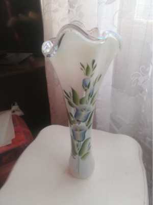 Ваза для цветов стекло Синие цветы, высота 30+ см. В отличном состоянии.