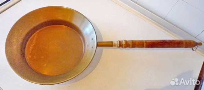 Медный/ латунный таз СССР раритет, для варки варенья. С деревянной ручкой. На обратной стороне клеймо с надписью "Тула".