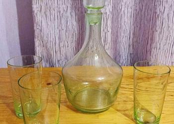 Графин стекло СССР салатовый со стаканчиками. Цена указана за комплект - один графин и 3 стакана. Как раз "на троих"...