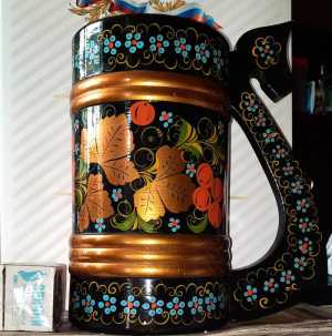 Кружка - дерево, ручная роспись, Луховицкий мехлесхоз, высота ~ 23 см. Только самовывоз.