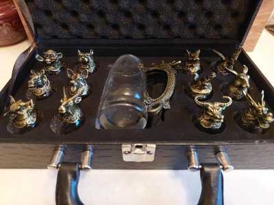 Новый, вообще не пользовались. Подарили давно, лежал в шкафу.. Стекло,с позолотом. Хороший подарок для знакомых и друзей.