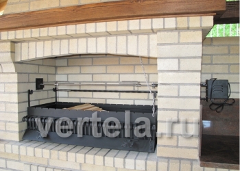 Электро-вертел для комплекса барбекю с узлом прохода и мотором для встраивания в нишу.