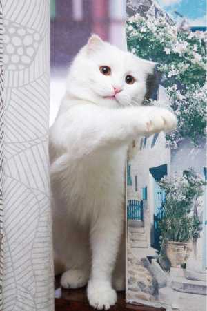 Продается эксклюзивная, роскошная чисто-белая шотландская прямоухая плюшевая кошечка 8 месяцев очень редкого окраса как...