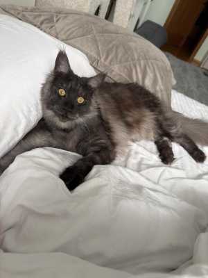 Зорро котик мейн-кун сладкий пирожок. Мега ласковый и игривый. Обладатель роскошной чёрной дымной шубки и галантных манер.