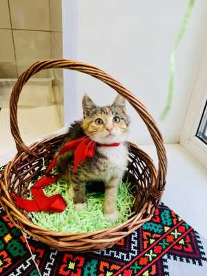 Котёнок, девочка, породы не знаю, месяц-два примерно. Подбросили в коробке.