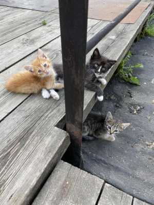 Нашли в подвале 4 малыша. Уже ребятам 2 месяца, умные и приучены к лотку, но иногда ходят мимо.