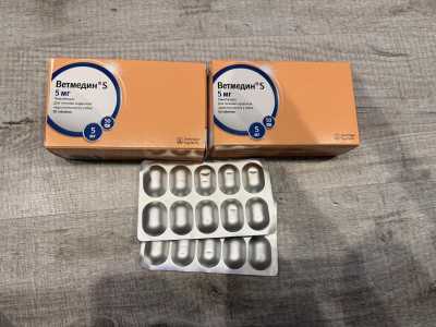 Таблетки Ветмидин 5мг. 2 упаковки полные + 2 слайса. Покупали в Казахстане. Годны до 27года. Цена за всё.