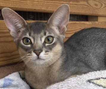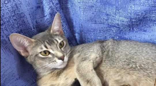 Абиссинская кошка голубого окраса выведена из разведения. Возраст 4,5 года. Стерилизована.