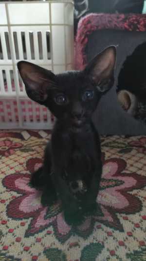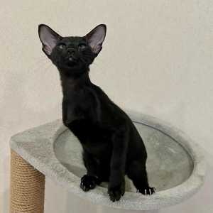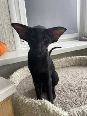Ориентальная кошечка , окрас черный, дата рождения 06.10.25. Привита по возрасту и приучена к лотку и когтеточке.