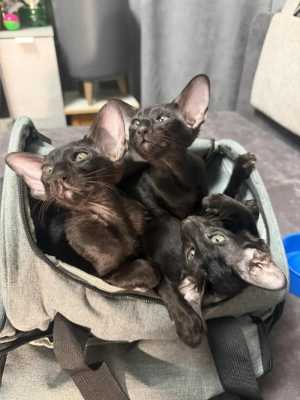 Котята родились 27 марта от домашней молодой кошки, первые роды, папа и мамы чистокровные ориенталы, 3 мальчика и 2 девочки.