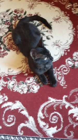 Котик. Ориентальной породы. Примерно 3 месяца. Черный с зелеными глазами.