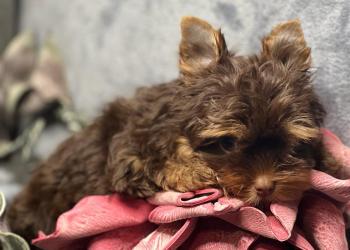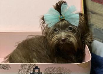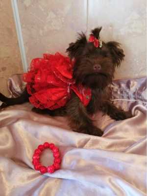 Девочка йоркширского терьера шоколадного окраса без подпала. Возраст 3 месяца. Ожидаемый вес 2.5 кг.
