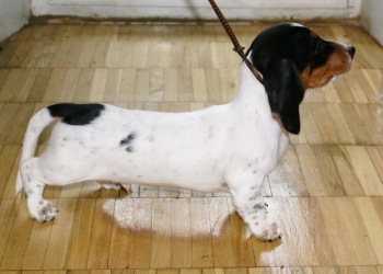 Щенок таксы, кобель гл/ш миниатюрный очень редкого окраса! Ч/подп пейболд, 4,5мес. Прививки. Родители с родословной!